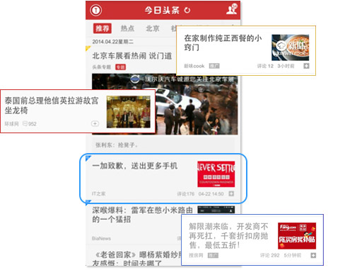 在新闻信息流中展现广告,广告图片大于新闻图片尺寸,获得高关注度