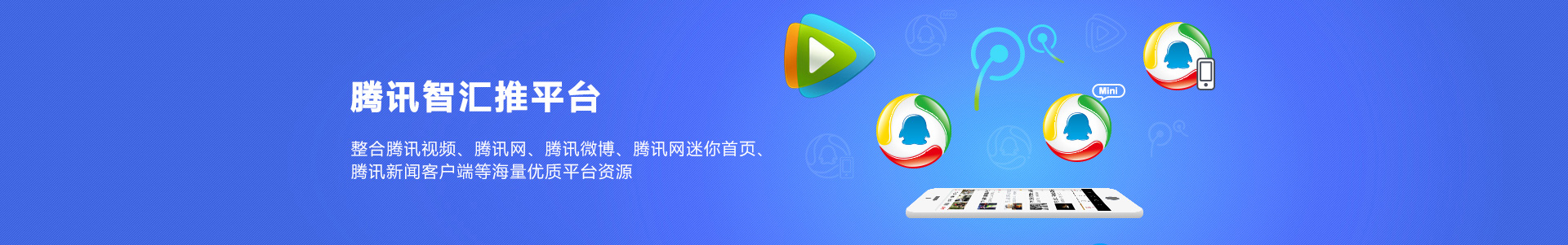 智汇推整合腾讯网、腾讯视频、腾讯微博、腾讯新闻客户端、QQ、微信等优质资源,通过腾讯多年来对用户需求的深刻理解,以大数据挖掘为基础,将企业推广信息以多元形态推送到有需求的用户面前,直达8亿用户的网络生活及工作场景,实现广告在腾讯资讯、娱乐、社交三大平台的精准投放,大幅提升广告效果。