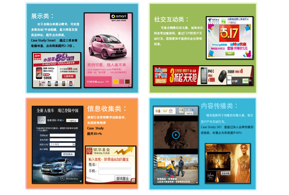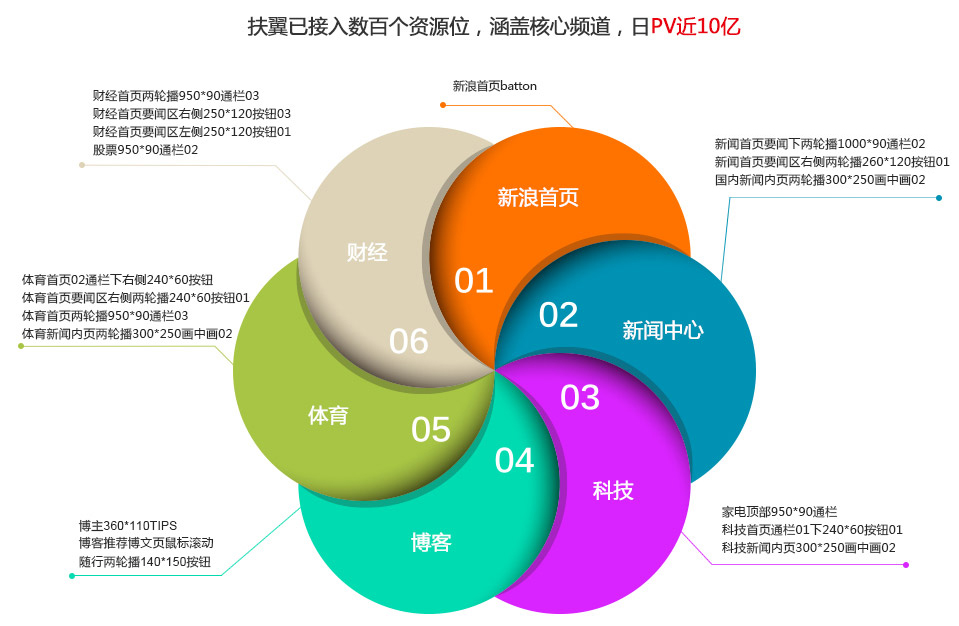 新浪网站核心频道数百资源位,支持图片,Flash,短链。