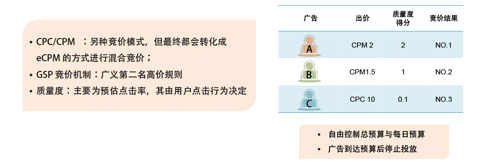采用CPM和CPC竞价方式。